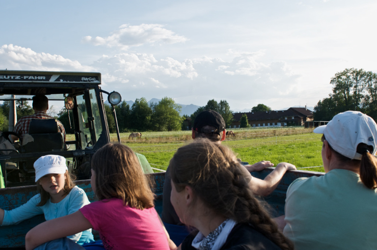 Ob Traktor-Rallye, Kettcar-Flitzen, Trampolin-Akrobatik, bei der Heuernte dabei sein, Kühe eintreiben, Ponyausritte, Ausflüge, gemütliches Grillen in der Hütte… Auf dem Abrahamhof gibt es viel zu entdecken.