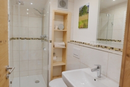 Hell und gemütlich eingerichtete Ferienwohung im Anbau (1. und 2.Stock mit Innentreppe). Im ersten Stock befindet sich die Küche mit Südbalkon, oben unter dem Dach die beiden Schlafzimmer,die Eltern werden von der Morgensonne wachgeküsst. Wegen der verhältnismäßig vielen Treppen empfehlen wir die Wohnung nicht für Kinder im Krabbelalter!